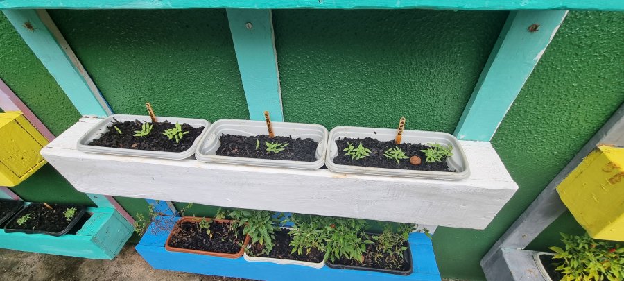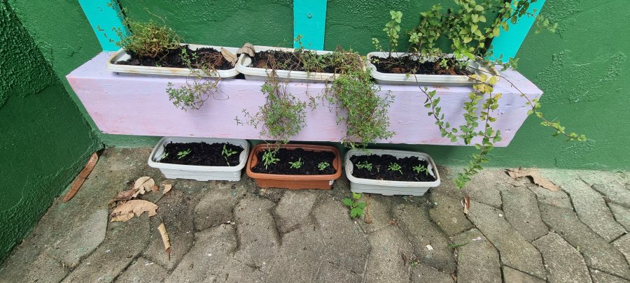 Já é perceptivel que as sementes estão brotando,,, E as crianças vibram percebendo o processo de desenvolvimento das plantinhas.