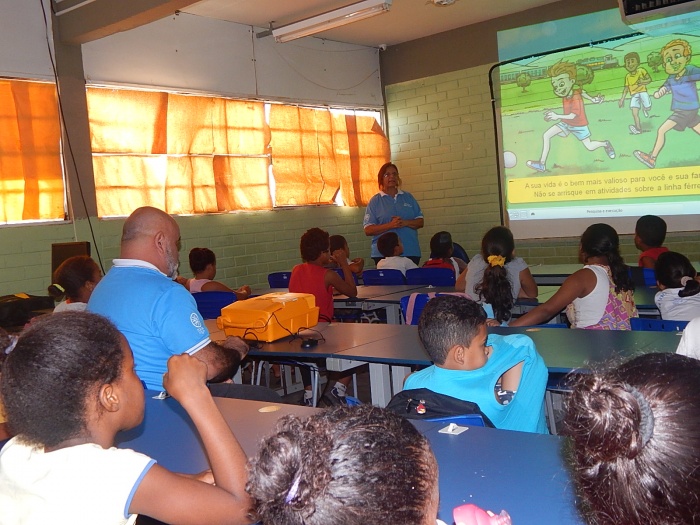 AULA COM PALESTRA INTERATIVA DE SEGURANÇA FERROVIÁRIA: FILME, JOGO, CONTAÇÃO DE HISTÓRIA E MUITA ANIMAÇÃO!
