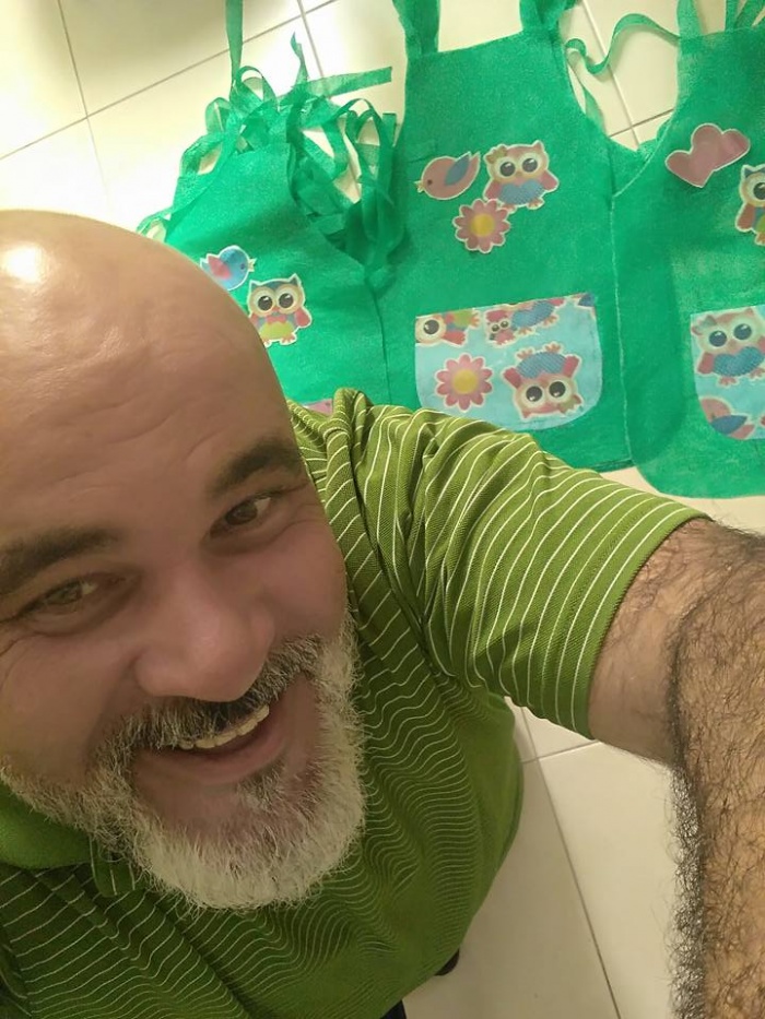 Ewerton e Amanda confeccionando material para a formatura dos Contadores de HIstórias.