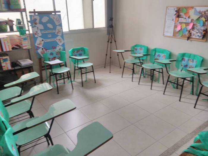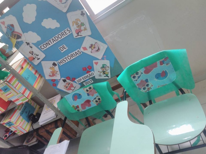 Colaboradores preparando a formatura dos Contadores de Histórias