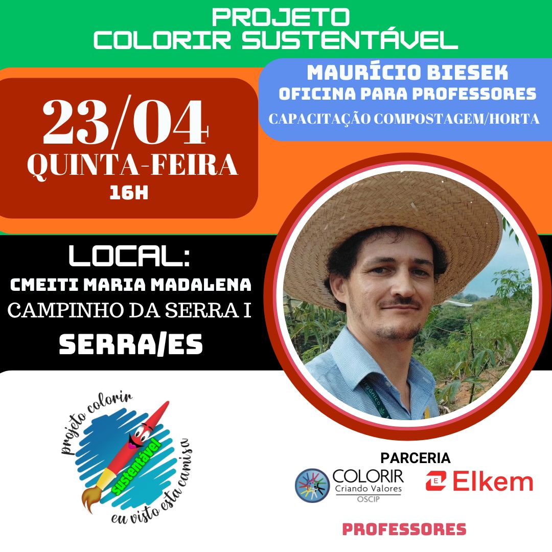 Local: FORMAÇÃO COMPOSTAGEM/HORTA - PROJETO COLORIR SUSTENTÁVEL - CMEITI MARIA MADALENA Horário: 16H Turmas: EDUCADORES DO CMEITI MARIA MADALENA Atividades: