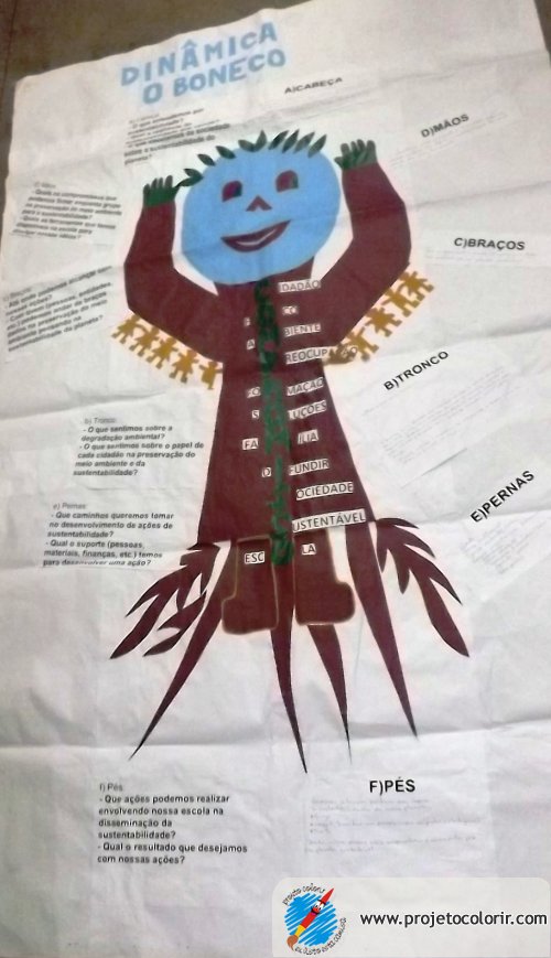 DINÂMICA O BONECO NO CURSO SUSTENTABILIDADE MINISTRADO NA EMEF VALÉRIA MARIA MIRANDA