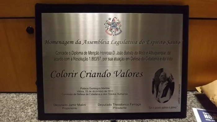 COLORIR É UMA DAS ORGANIZAÇÕES HOMENAGEADAS NA ALES COM A MENÇÃO HONROSA DOM JOÃO BATISTA.