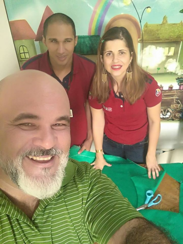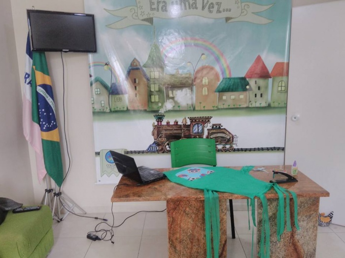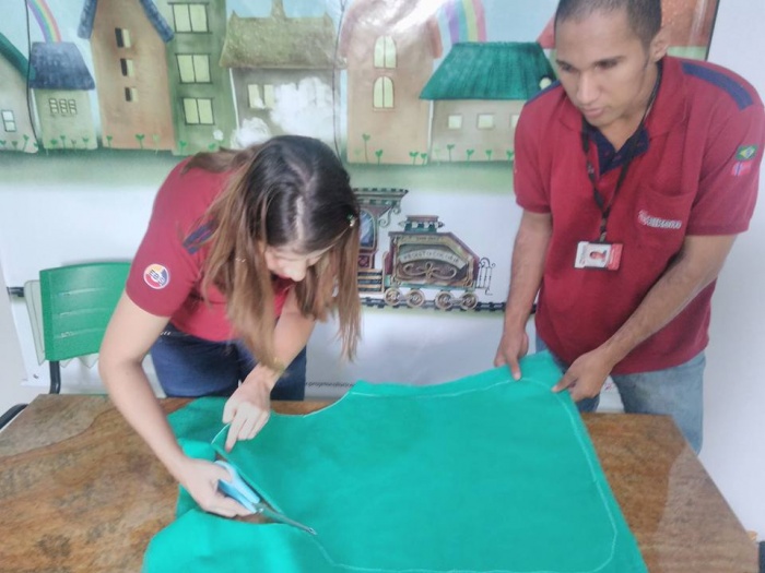 Ewerton e Amanda confeccionando material para a formatura dos Contadores de HIstórias.